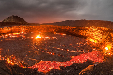 The Danakil Depression is one of the hottest and most inhospitable places on Earth, yet its surreal landscapes attract adventurous travelers from around the world. Highlights of the area include the otherworldly sulfur springs of Dallol, the colorful salt flats of Lake Asale, and the bubbling lava lakes of Erta Ale volcano.